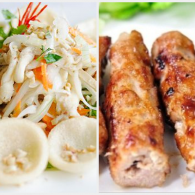 Khai vị 2 món: Gỏi nấm + nem nướng