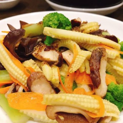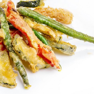 Khai vị 2 món: Rau củ tẩm bột chiên + nấm nướng phô mai