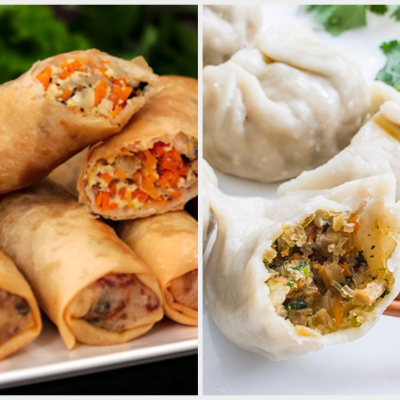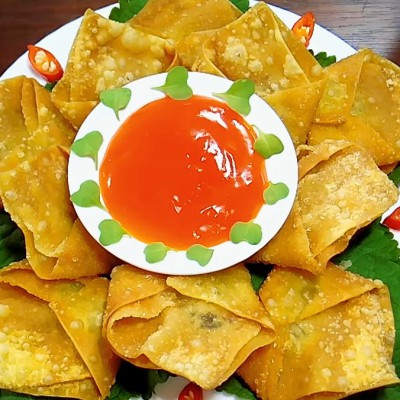 Khai vị 2 món: Chả giò + sủi cảo chiên giòn
